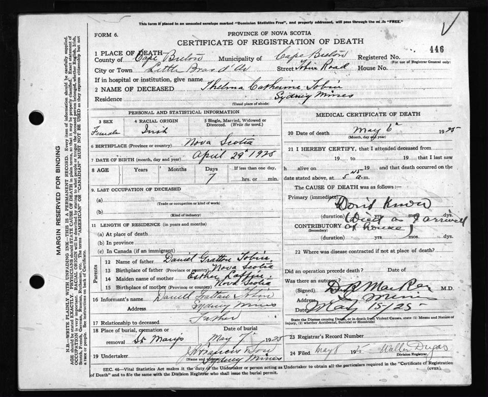 Death Registration: Year: 1925 file: 80 number: 446
