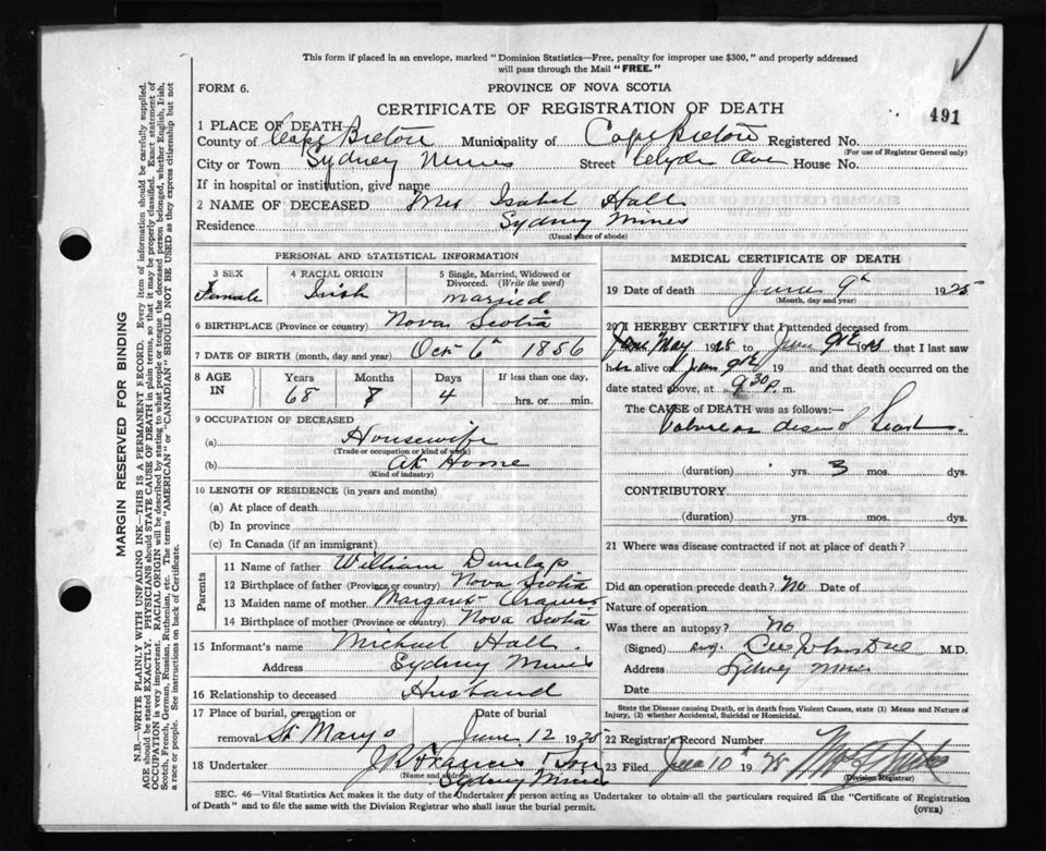 Nova Scotia Archives — https://archives.novascotia.ca/vital-statistics/death/?ID=179921