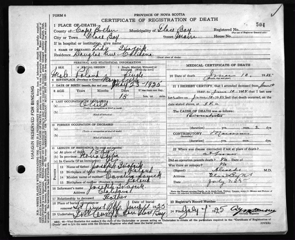Death Registration: Year: 1925 file: 80 number: 504