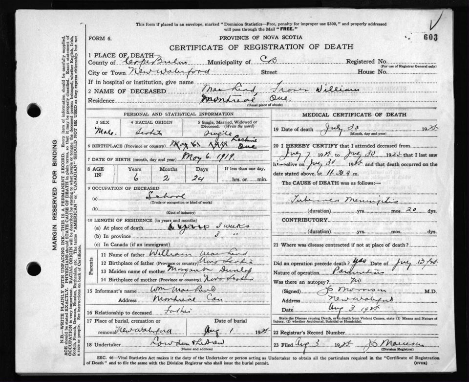 Death Registration: Year: 1925 file: 80 number: 603