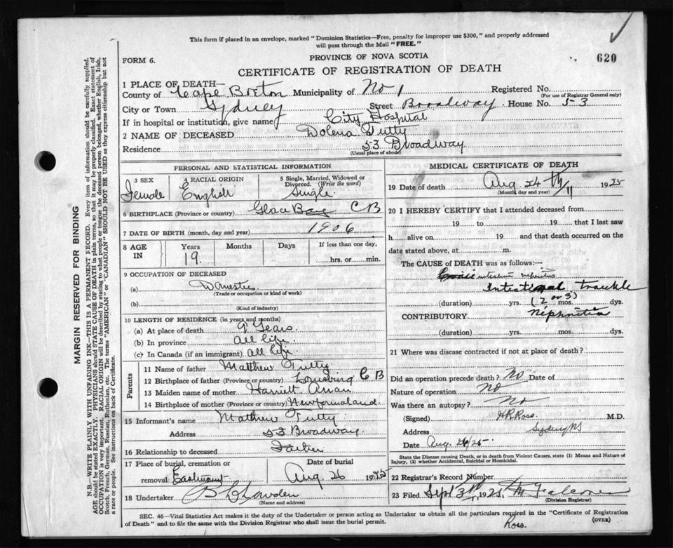 Death Registration: Year: 1925 file: 80 number: 620