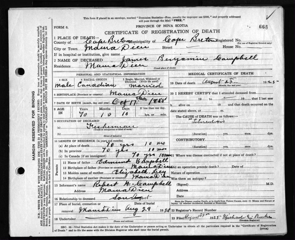 Death Registration: Year: 1925 file: 80 number: 668