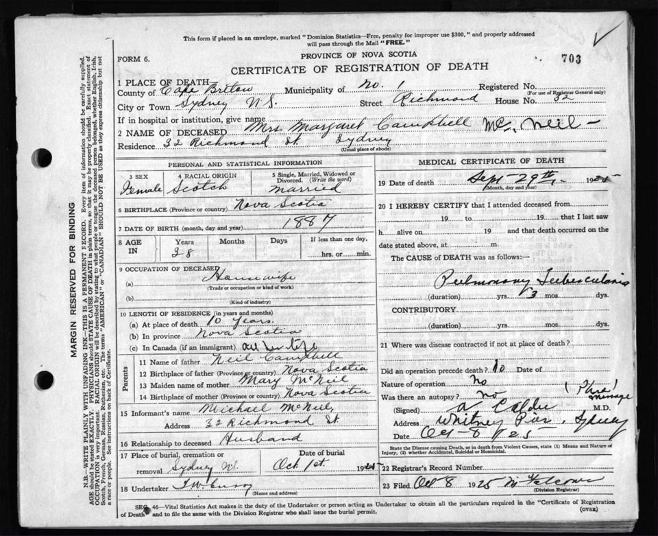 Death Registration: Year: 1925 file: 80 number: 703