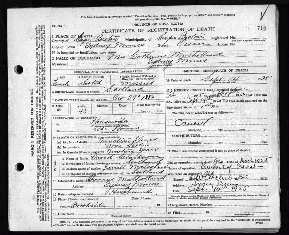 Death Registration: Year: 1925 file: 80 number: 712