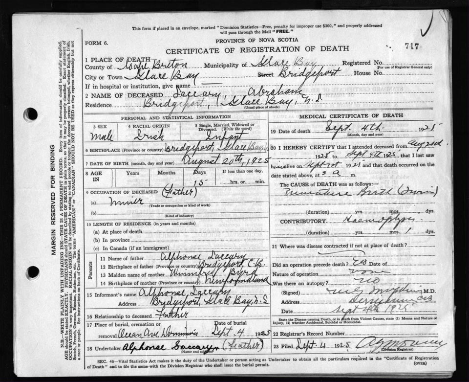 Death Registration: Year: 1925 file: 80 number: 717