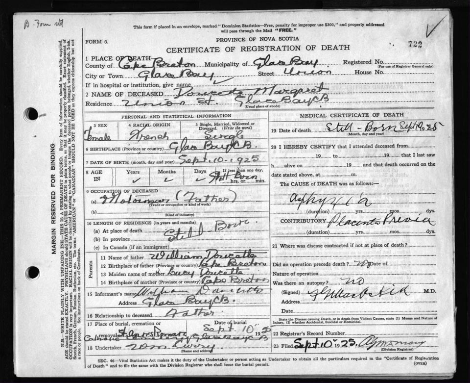 Death Registration: Year: 1925 file: 80 number: 722