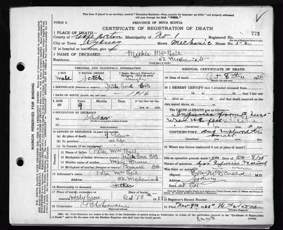 Death Registration: Year: 1925 file: 80 number: 775