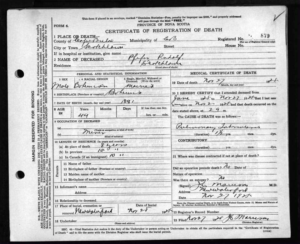 Death Registration: Year: 1925 file: 80 number: 879