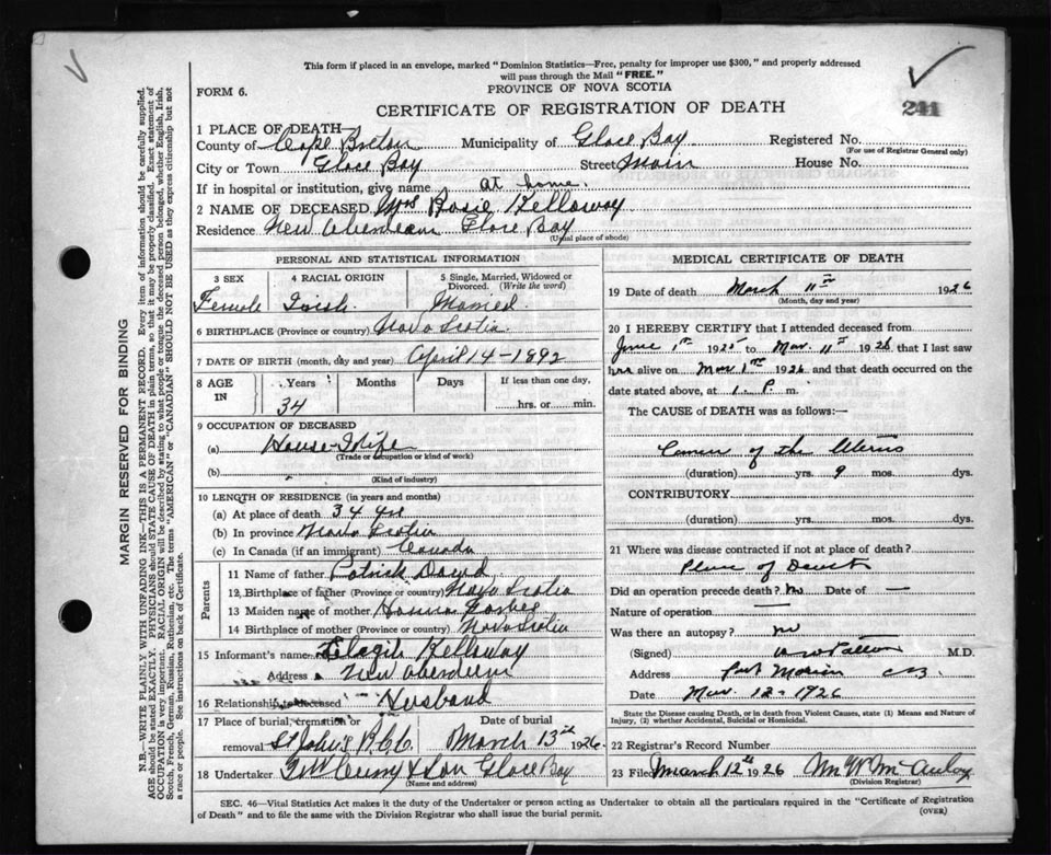Female Death Registration: Year: 1926 file: 81 number: 241