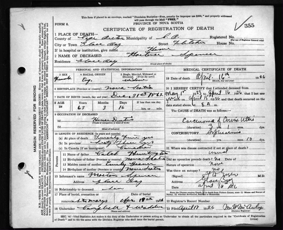 Female Death Registration: Year: 1926 file: 81 number: 355