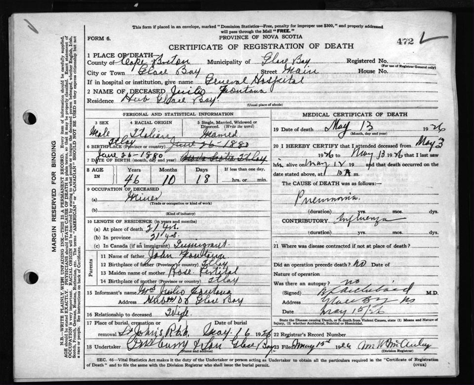 Male Death Registration: Year: 1926 file: 81 number: 472