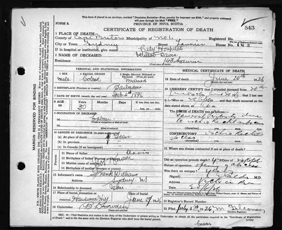 Male Death Registration: Year: 1926 file: 81 number: 543