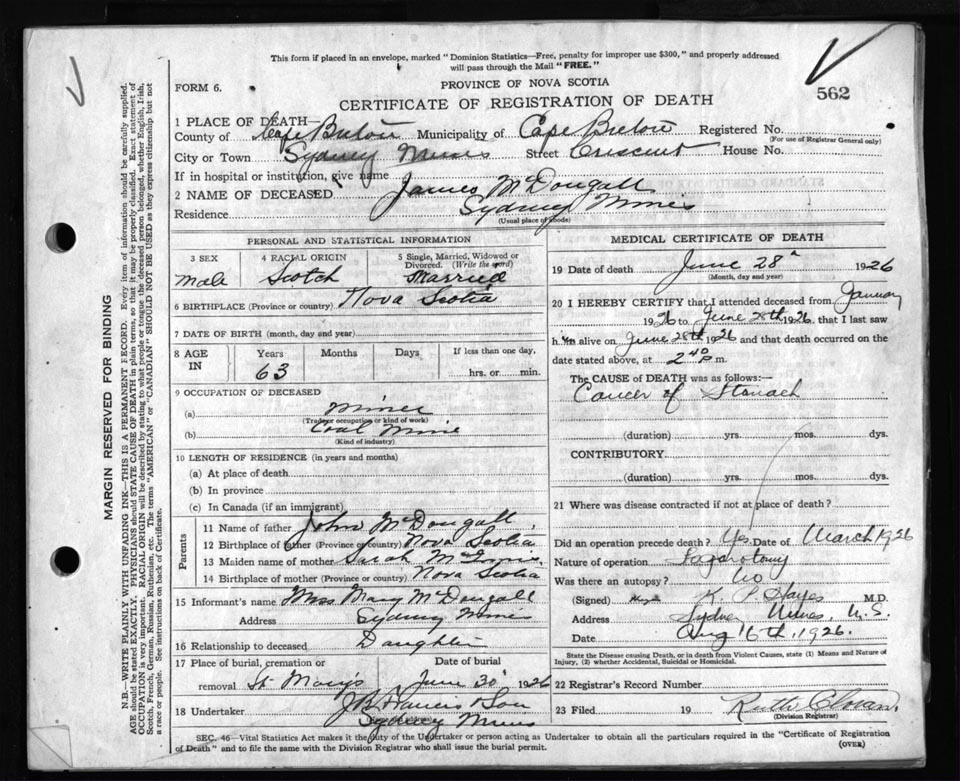 Male Death Registration: Year: 1926 file: 81 number: 562