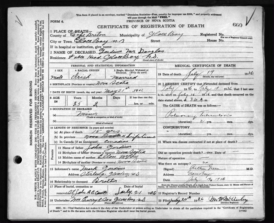 Male Death Registration: Year: 1926 file: 81 number: 660