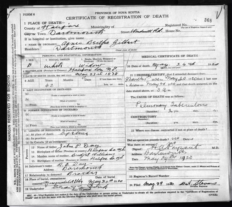 Death Registration: Year: 1920 file: 82 number: 368