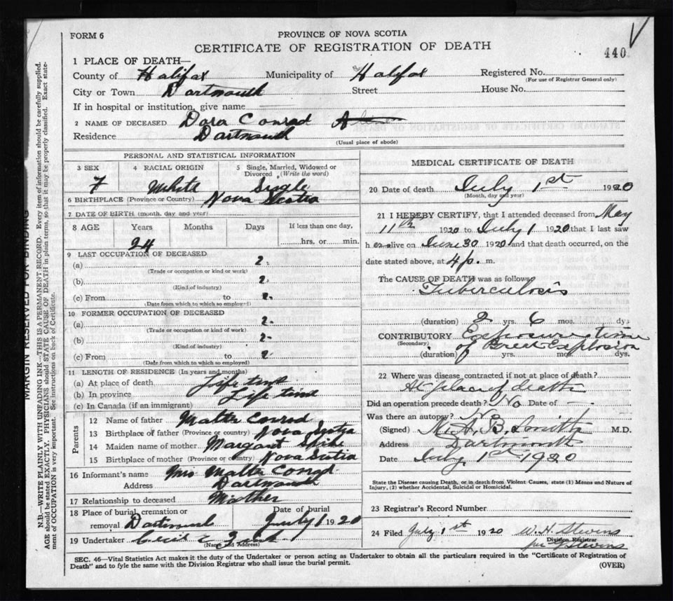 Death Registration: Year: 1920 file: 82 number: 440