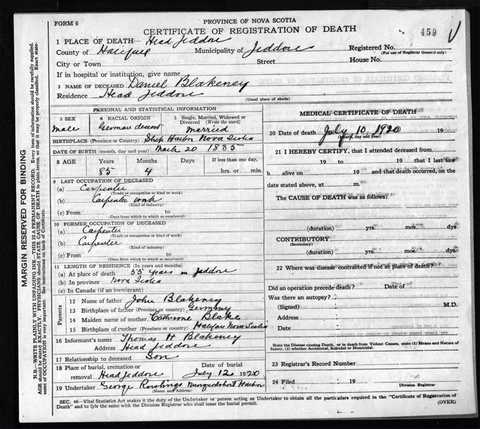 Death Registration: Year: 1920 file: 82 number: 459