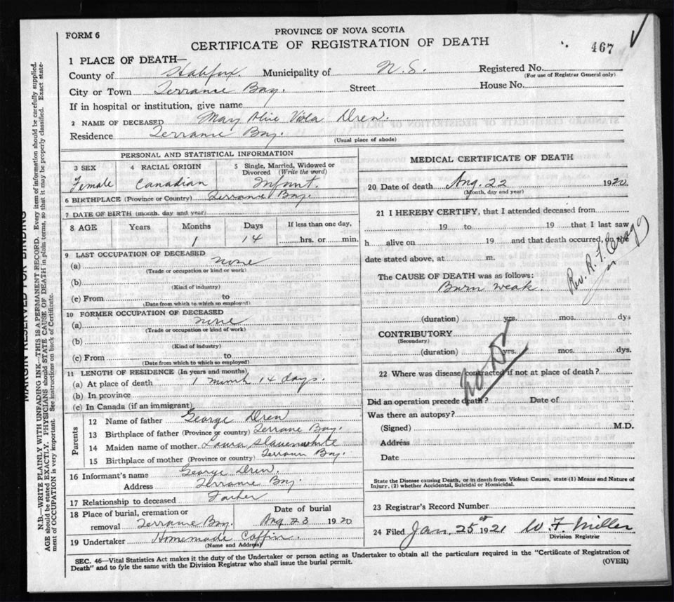 Death Registration: Year: 1920 file: 82 number: 467