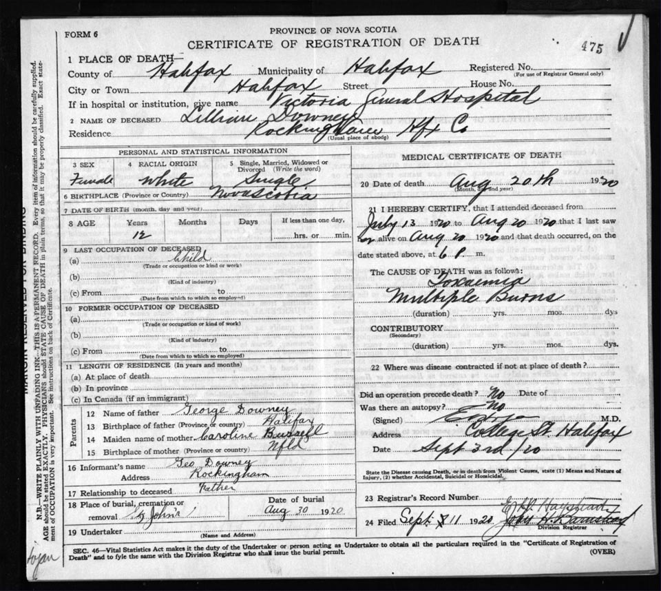 Death Registration: Year: 1920 file: 82 number: 475