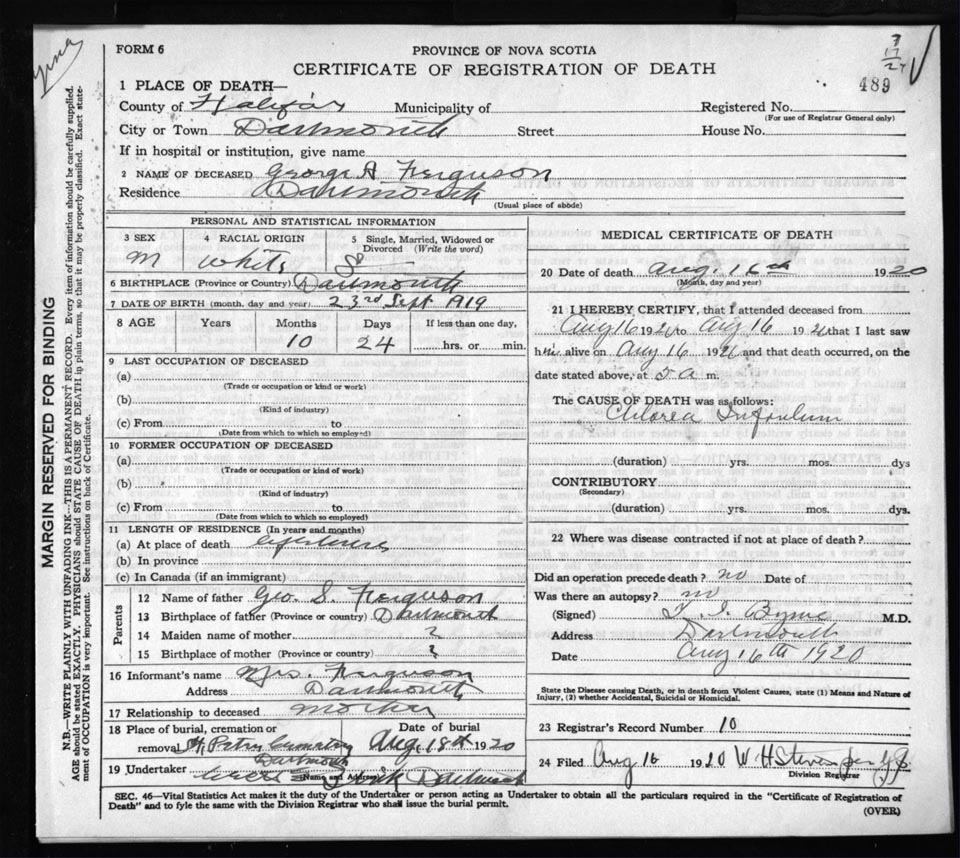 Death Registration: Year: 1920 file: 82 number: 489
