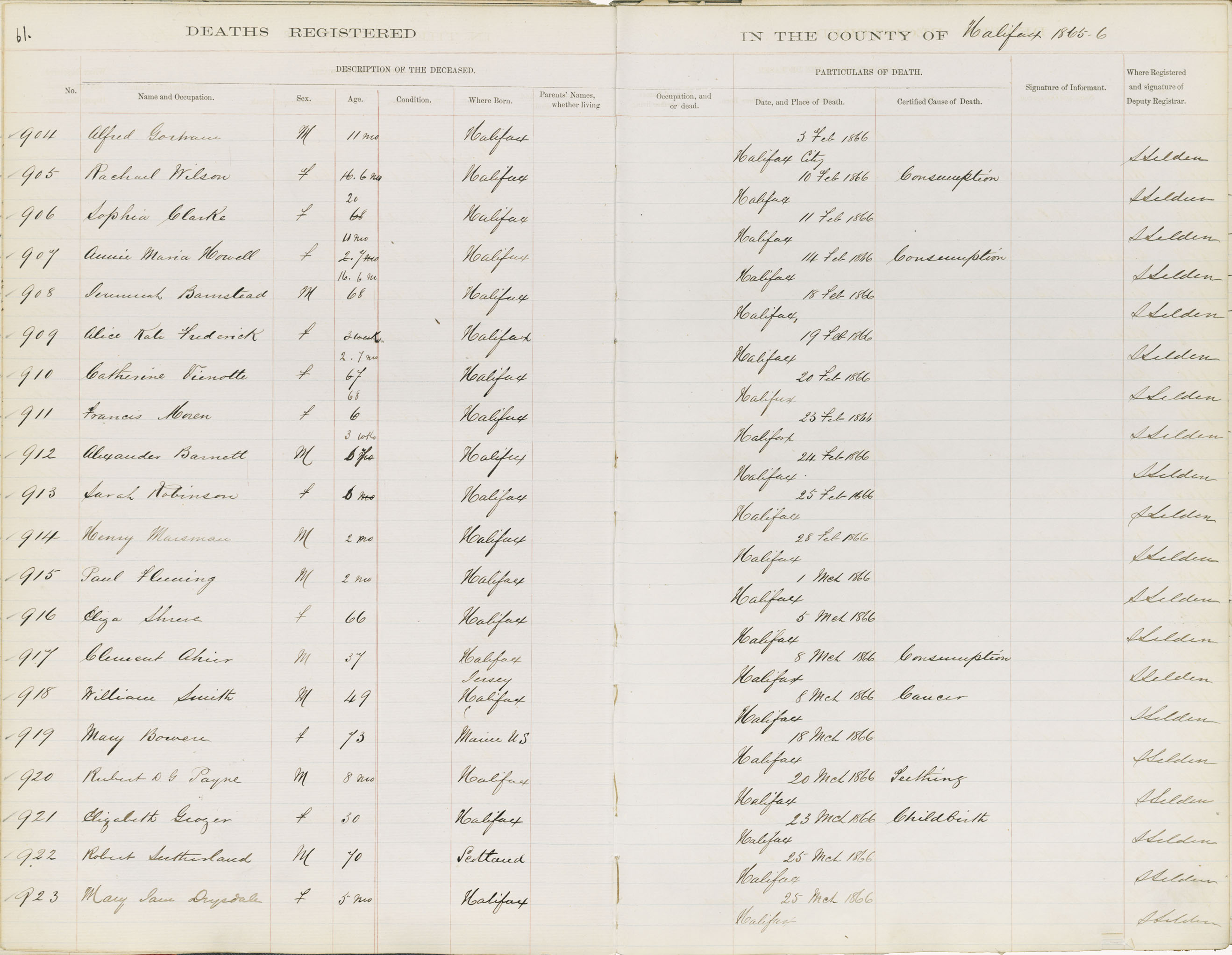 Death Registration: Year: 1866 book: 1808 page: 61 number: 923