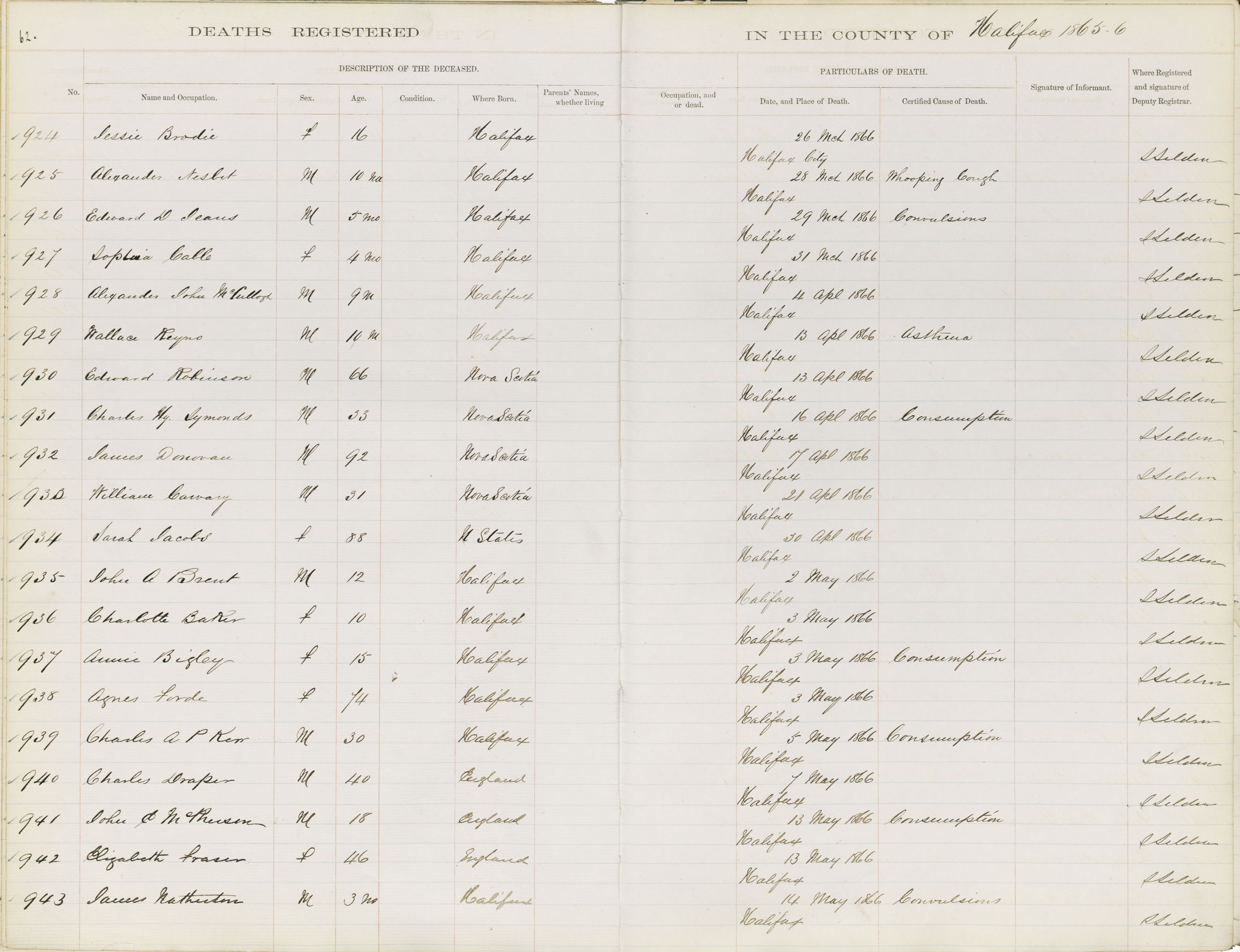 Death Registration: Year: 1866 book: 1808 page: 62 number: 943