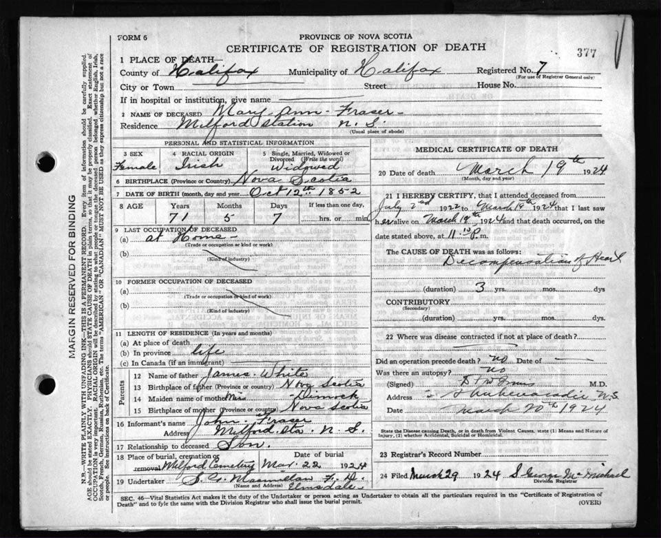 Death Registration: Year: 1924 file: 84 number: 377