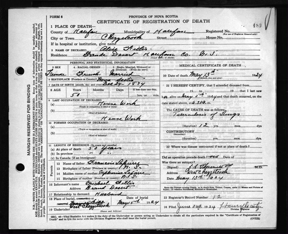 Death Registration: Year: 1924 file: 84 number: 489