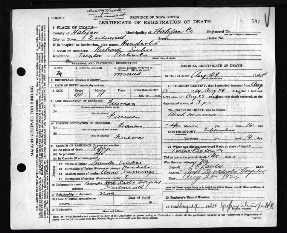 Death Registration: Year: 1924 file: 84 number: 597