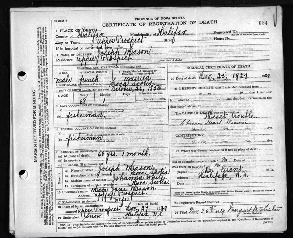 Death Registration: Year: 1924 file: 84 number: 684