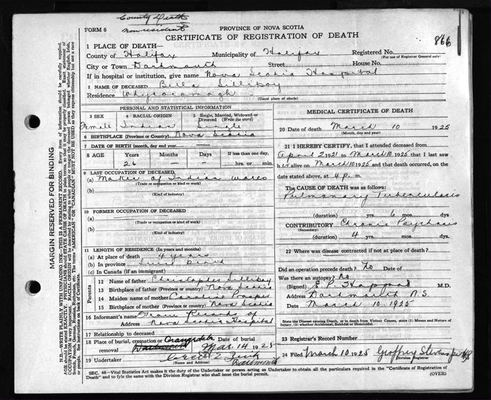 Death Registration: Year: 1925 file: 84 number: 866