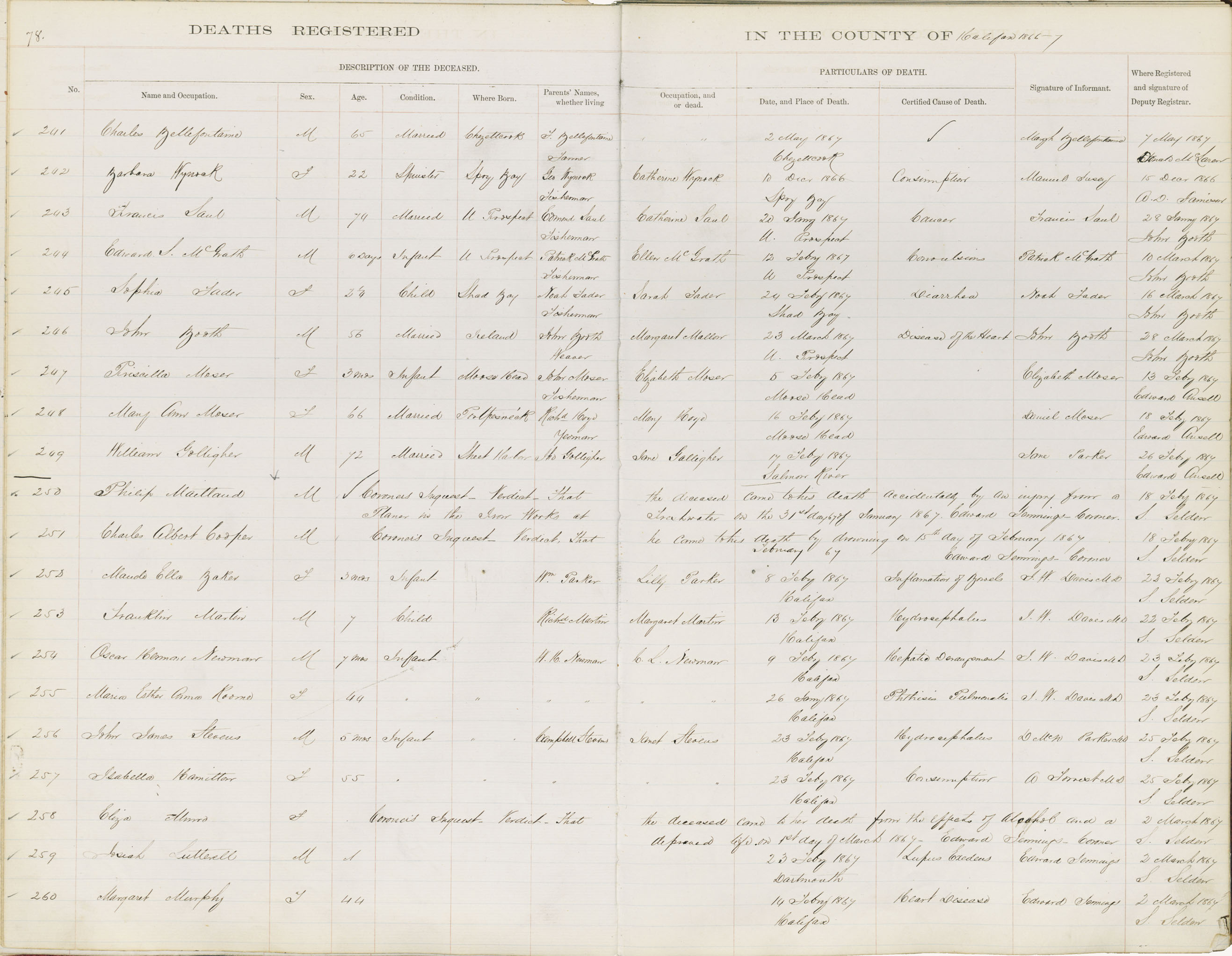 Death Registration: Year: 1867 book: 1808 page: 78 number: 241