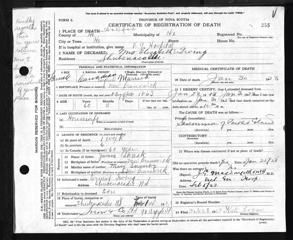 Nova Scotia Archives — https://archives.novascotia.ca/vital-statistics/death/?ID=188009