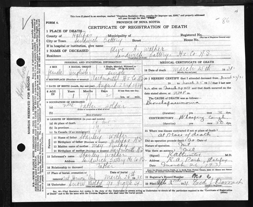 Female Death Registration: Year: 1931 file: 88 number: 86
