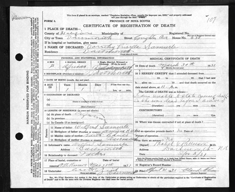 Female Death Registration: Year: 1931 file: 88 number: 107