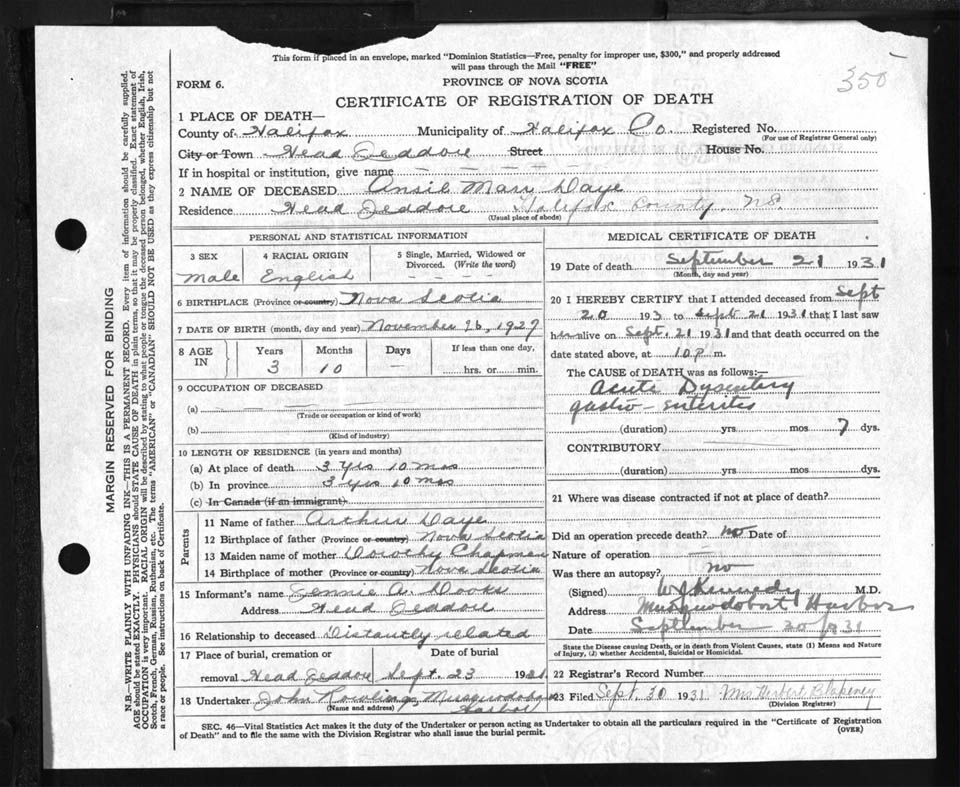 Male Death Registration: Year: 1931 file: 88 number: 350