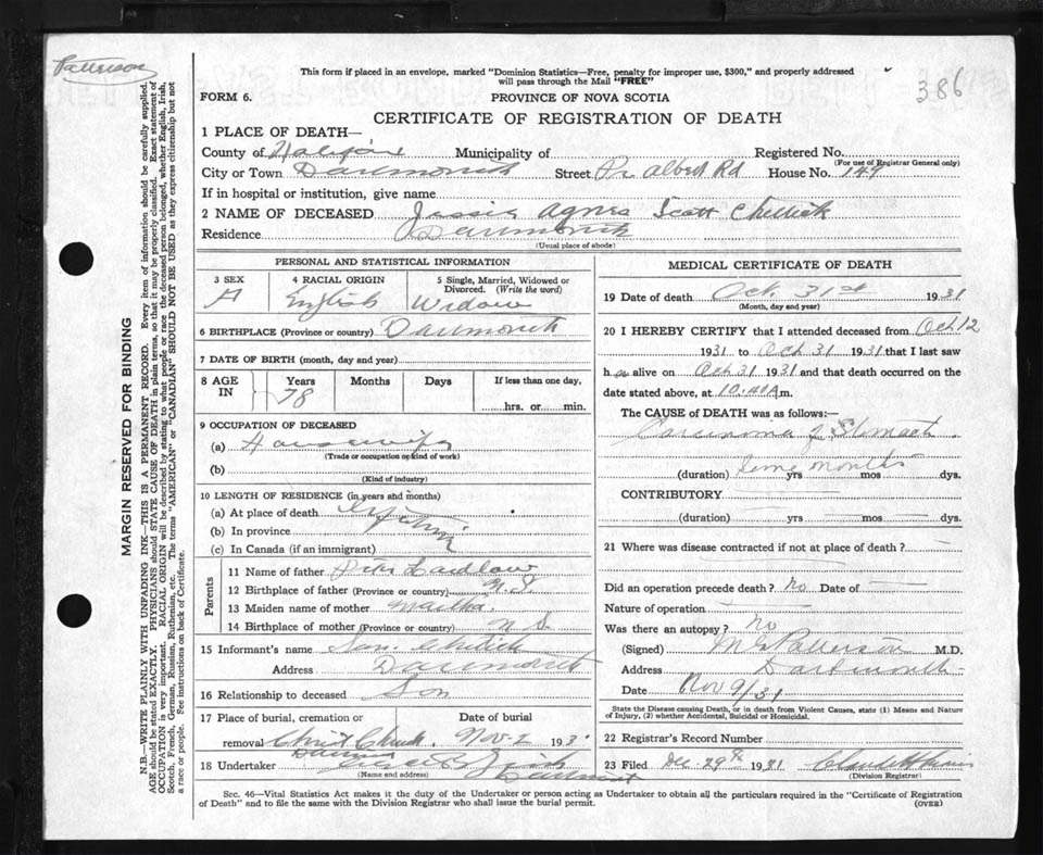 Nova Scotia Archives — https://archives.novascotia.ca/vital-statistics/death/?ID=189458