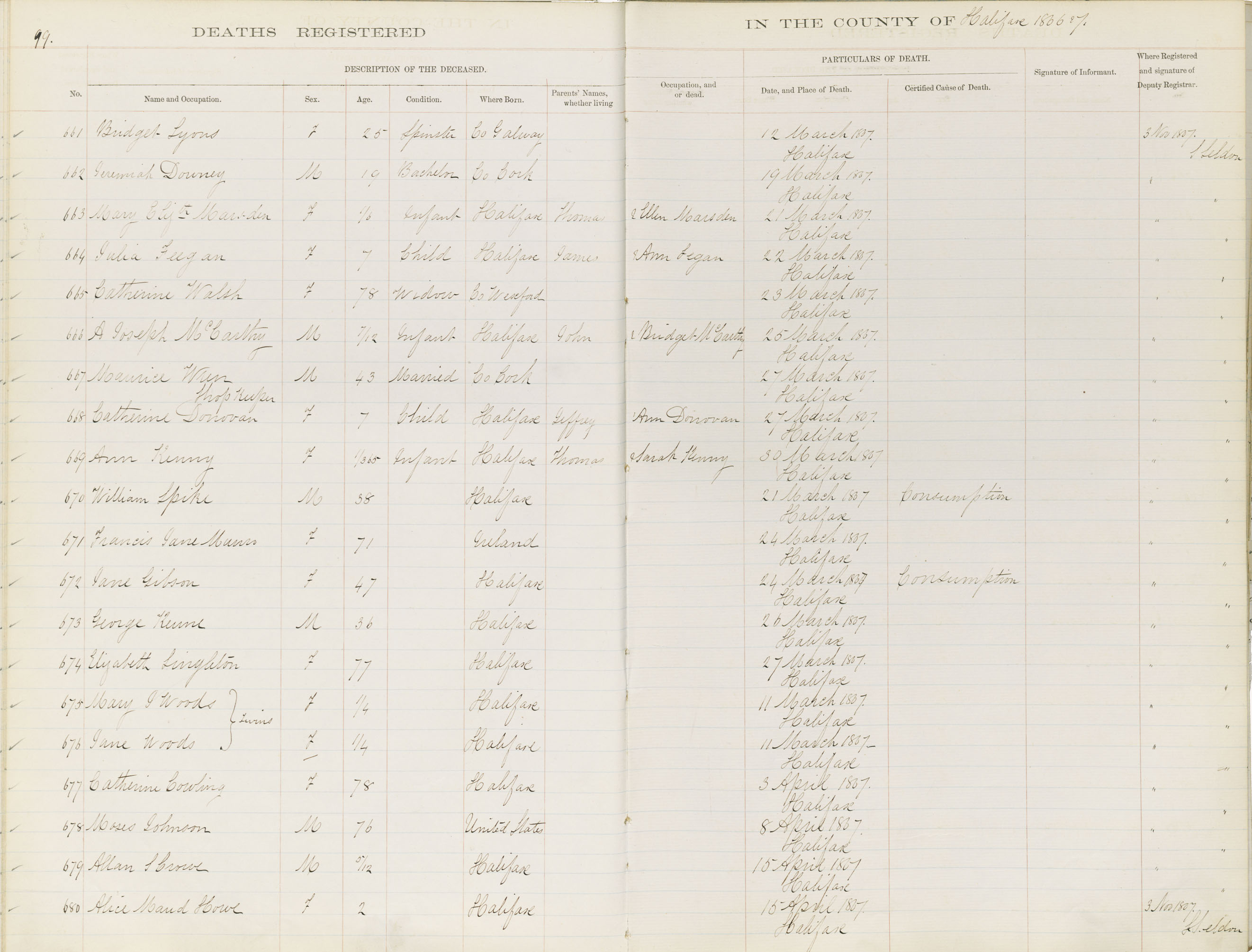 Death Registration: Year: 1867 book: 1808 page: 99 number: 661