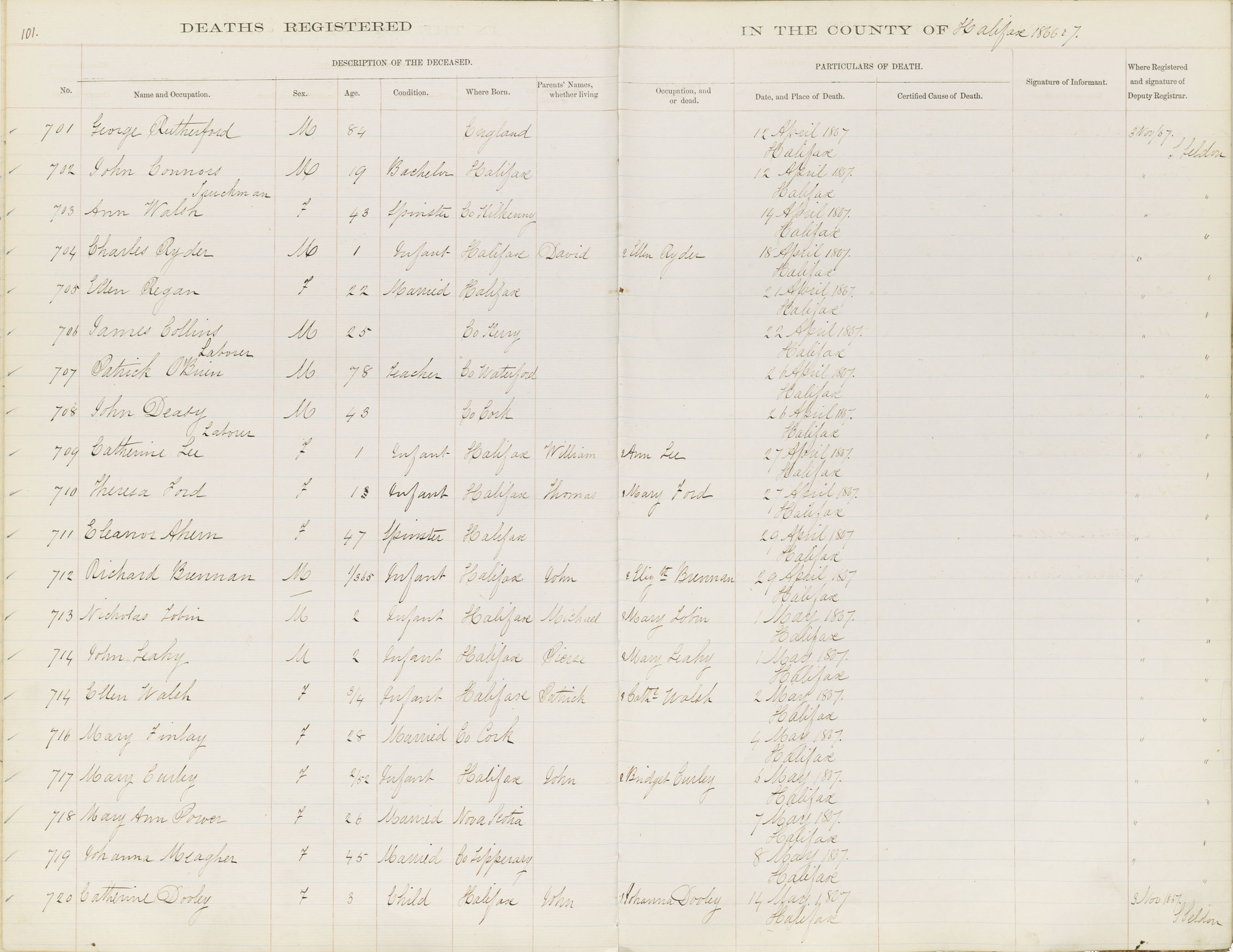 Death Registration: Year: 1867 book: 1808 page: 101 number: 701