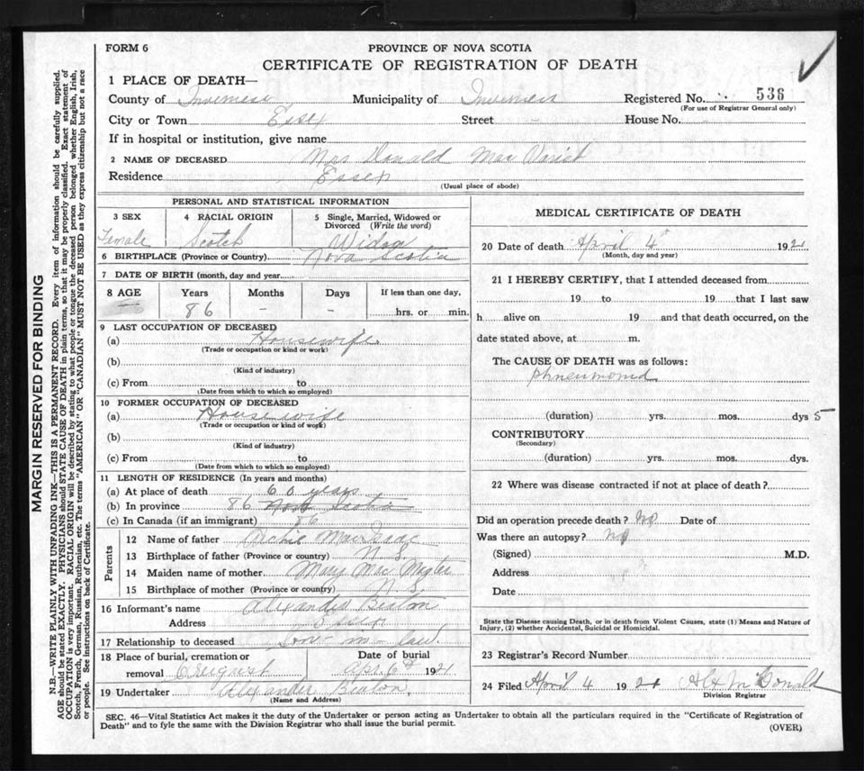 Nova Scotia Archives — https://archives.novascotia.ca/vital-statistics/death/?ID=190926