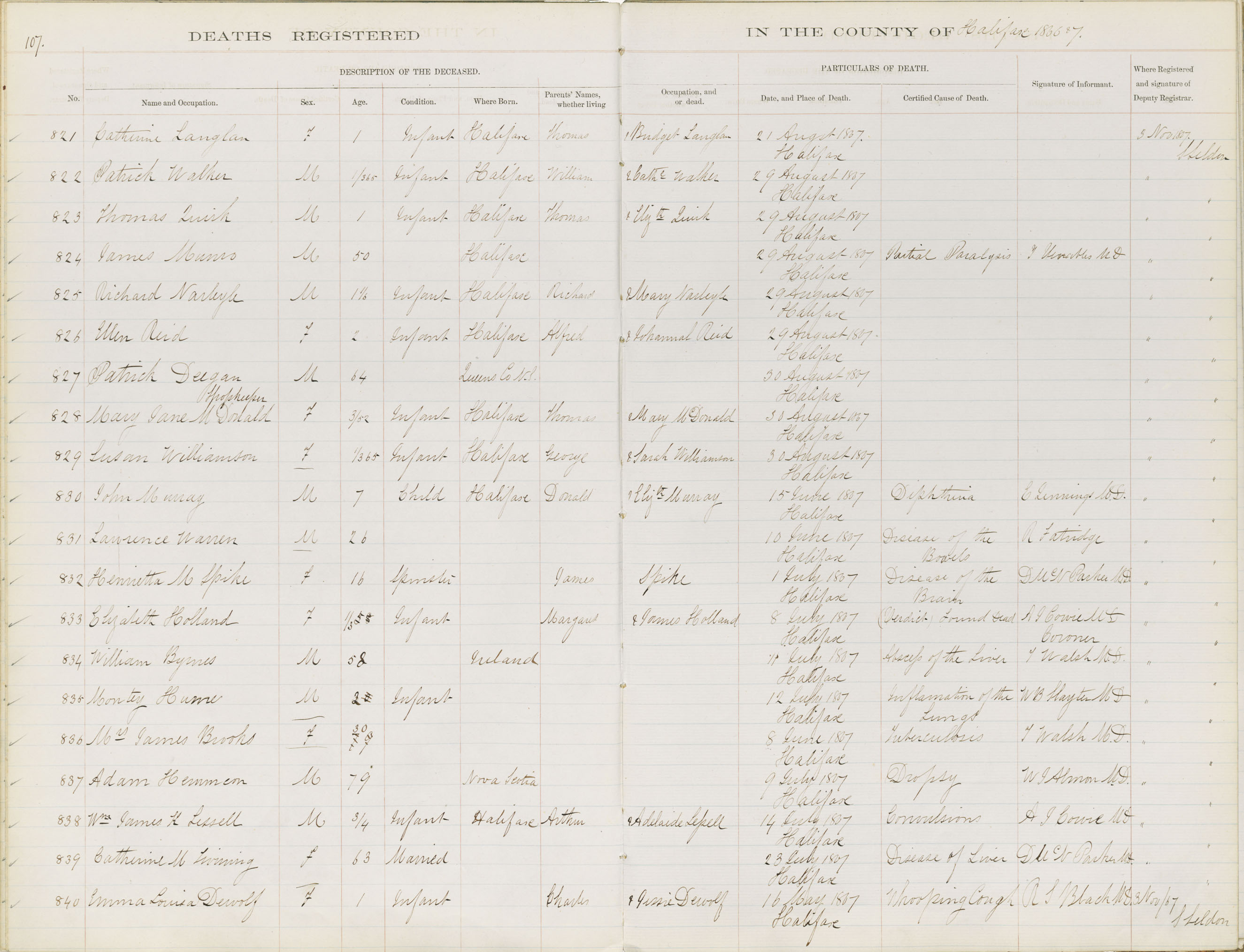 Death Registration: Year: 1867 book: 1808 page: 107 number: 821