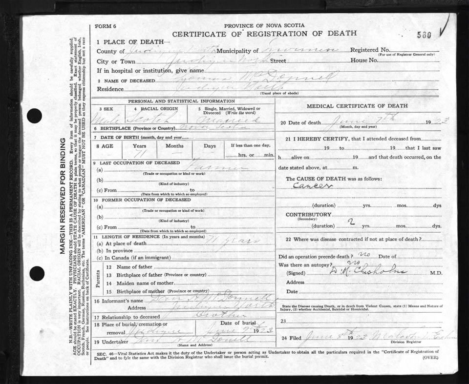 Nova Scotia Archives — https://archives.novascotia.ca/vital-statistics/death/?ID=191590