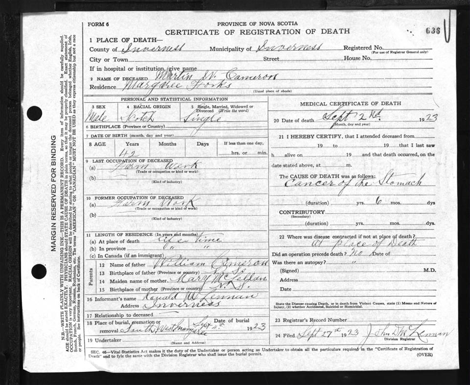 Nova Scotia Archives — https://archives.novascotia.ca/vital-statistics/death/?ID=191665