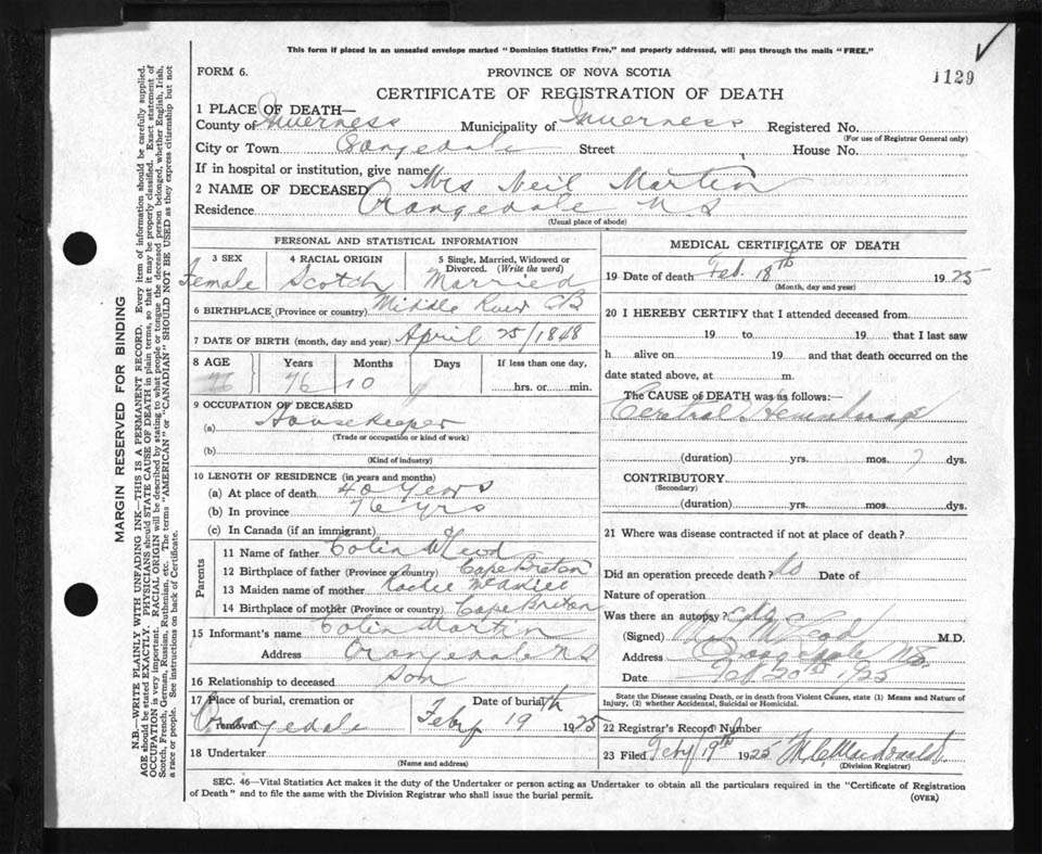 Nova Scotia Archives — https://archives.novascotia.ca/vital-statistics/death/?ID=192155