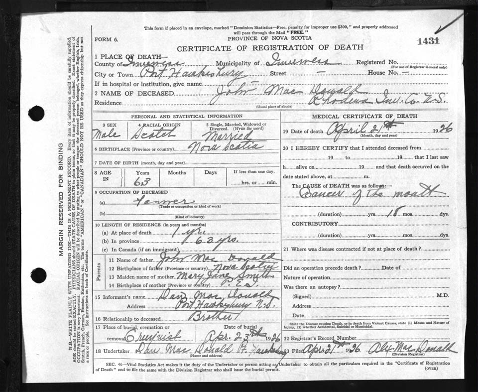 Nova Scotia Archives — https://archives.novascotia.ca/vital-statistics/death/?ID=192457