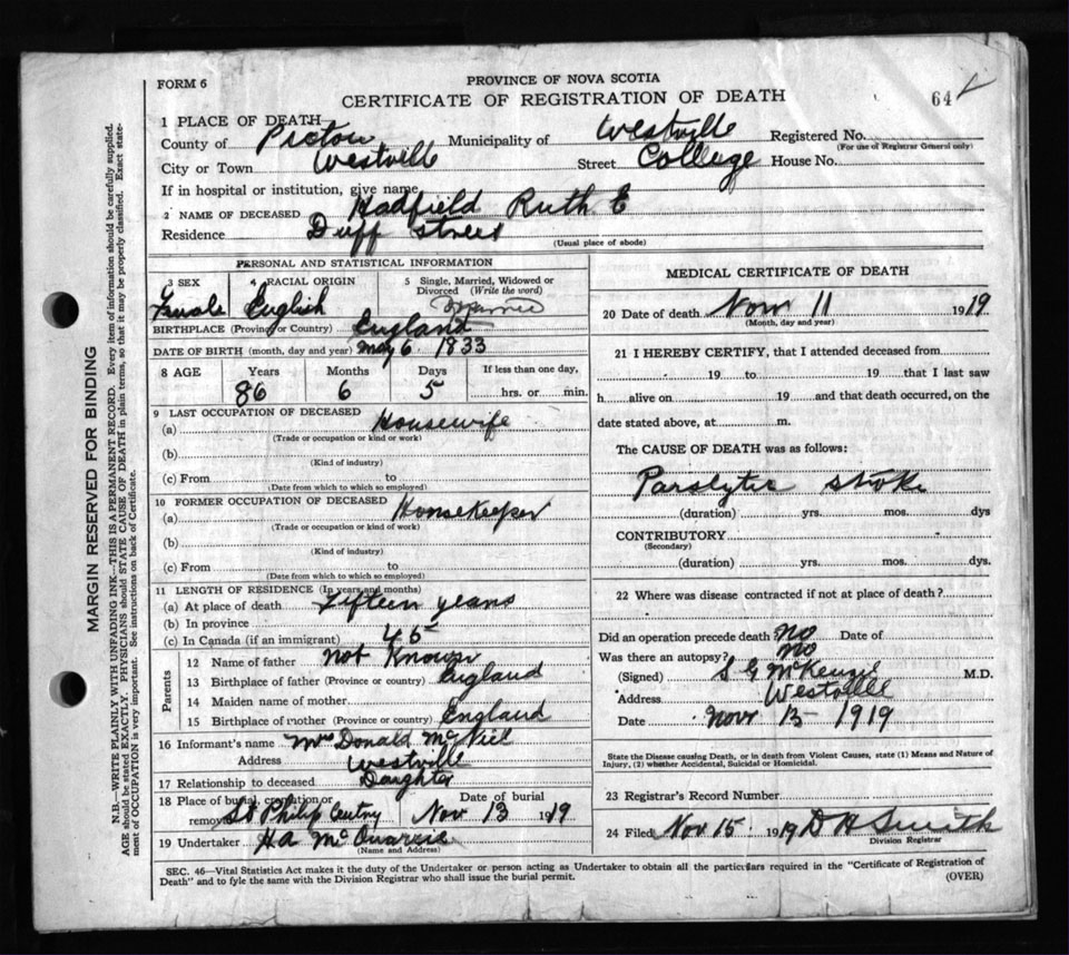 Nova Scotia Archives — https://archives.novascotia.ca/vital-statistics/death/?ID=199265