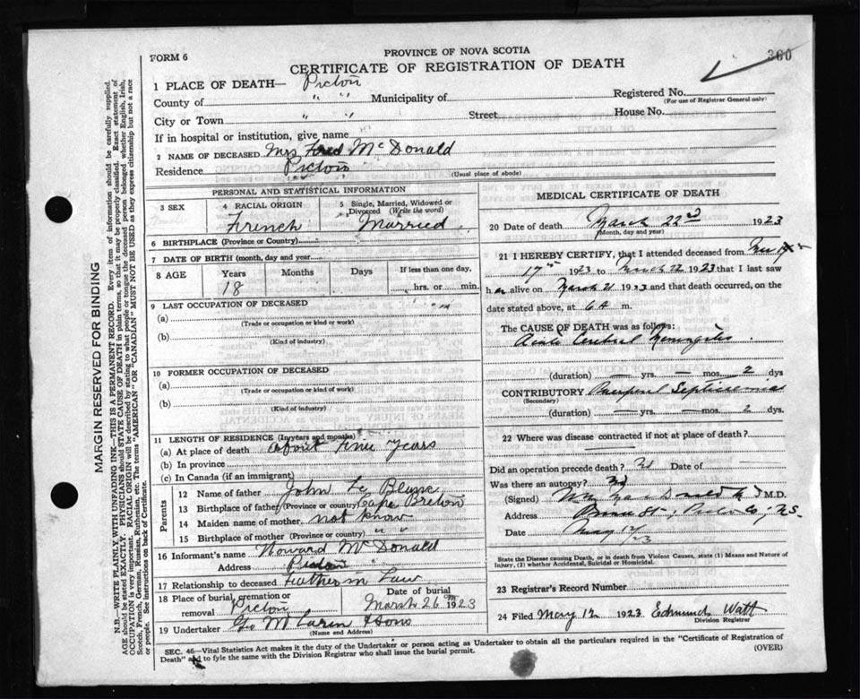 Death Registration: Year: 1923 file: 99 number: 360