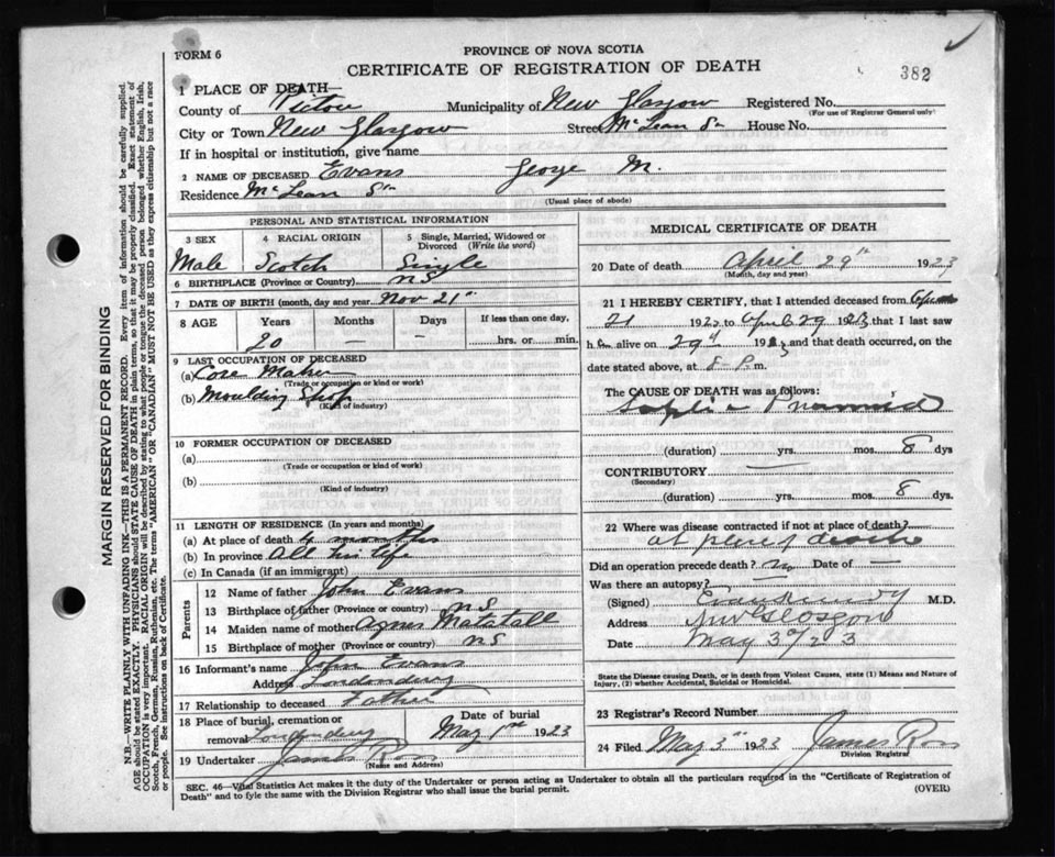 Death Registration: Year: 1923 file: 99 number: 382