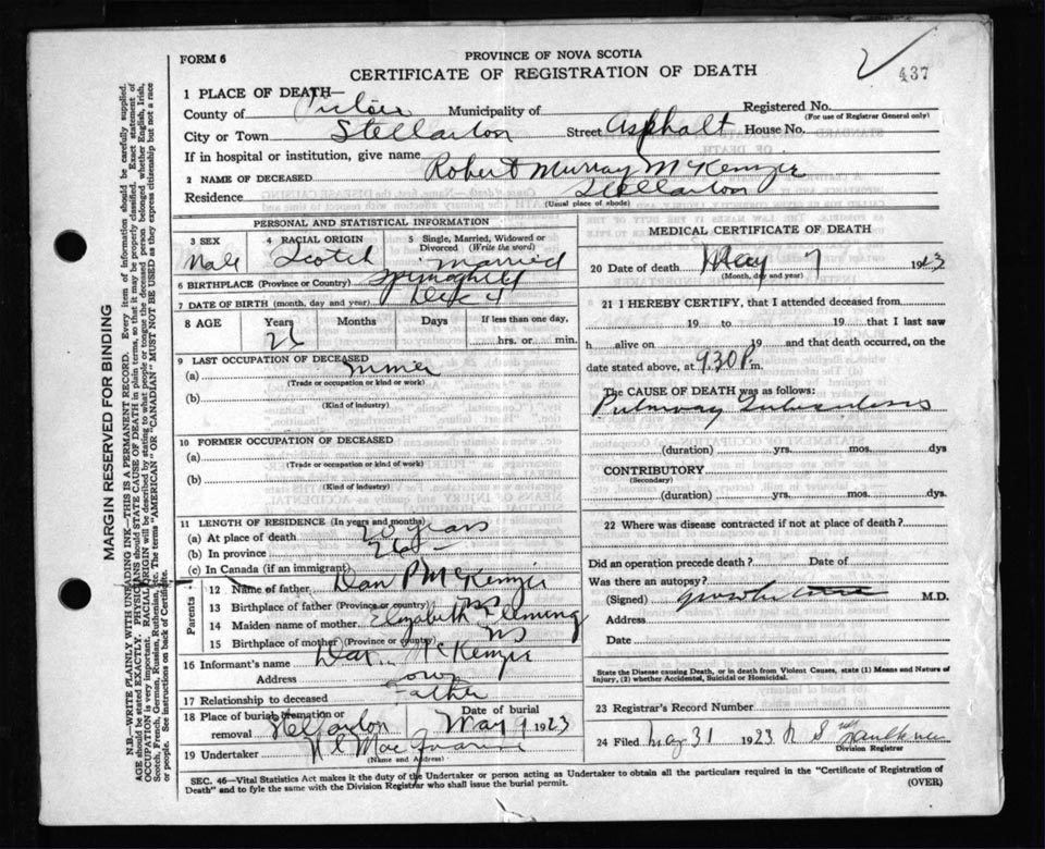 Death Registration: Year: 1923 file: 99 number: 437