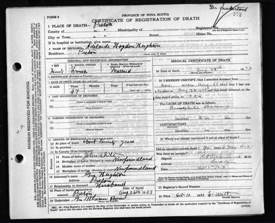 Death Registration: Year: 1923 file: 99 number: 572